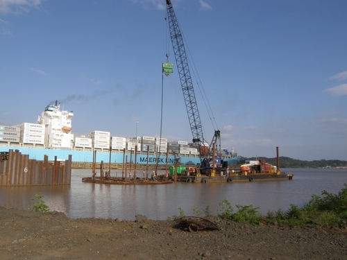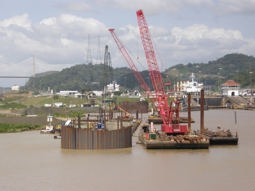 Construcción de Ataguía de Tablestacas con 58 celdas de 21.64m y 17.83m de diámetro, en el Lago Miraflores. Colocación de 230,000 m3 de relleno granular en celdas y arcos, colocación de concreto submarino y Construcción de 6,975m2 de muro de Tablestacas tipo Z